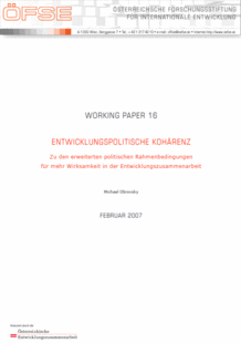 Der Maastrichtvertrag zur Schaffung der Europäischen Union (1992) bildet die gesetzliche Grundlage für die Verankerung von entwicklungspolitischer Kohärenz (PCD - Policy Coherence for Development), die allerdings erst mit der Erklärung der Millennium Development Goals (2000) tatsächlich als wichtiges Element der internationalen Entwicklungspolitik entdeckt und aktiviert wurde. Trotz der Bemühungen einiger weniger Länder der EU sowie der konkreten Schritte der Verankerung der PCD-Agenda auf Kommissions- und Rats-Ebene sind die EU und ihre Mitgliedsländer noch von einer entwicklungspolitisch kohärenten Politik weit entfernt. Obwohl PCD in den Grundsatzdokumenten der Entwicklungspolitik der EU-Mitgliedsländer Eingang gefunden hat, gehen viele Bemühungen über Mechanismen der allgemeinen Politikkoordination kaum hinaus. PCD ist - mit Ausnahme von Schweden - im Kompetenzbereich der Entwicklungspolitik und ihrer Verwaltung verankert und nicht gemeinsames Anliegen aller Regierungsmitglieder. PCD steht daher vielfach in Konkurrenz zu anderen politischen Interessen und wird von den Regierungen nicht als gemeinsame Verpflichtung in einem globalen Kontext wahrgenommen, sondern nur als ressortübergreifende Zielsetzung der Entwicklungspolitik. Die PCD relevanten Ratsbeschlüsse auf EU-Ebene, die von den EU-Mitgliedsländern mitgetragen werden sollten, müssten daher auf einer hohen politischen Ebene umgesetzt werden, damit sie auch für alle anderen entwicklungsrelevanten Politikbereiche zur Verpflichtung werden. PCD ist nicht nur eine Querschnittsaufgabe, die vom für Entwicklungspolitik und -zusammenarbeit zuständigen Ministerium verfolgt werden soll, sondern sollte auf Ebene der Regierungschefs bzw. des Ministerrates verankert werden.