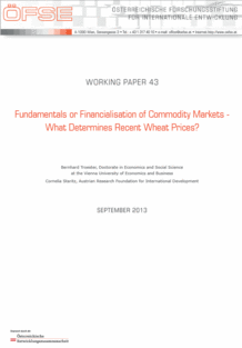 Food price developments have various impacts at the country and household level, in particular in developing countries with severe implications on food security, poverty and economic stability. The focus of this paper is on wheat as it is, together with rice, the most important food crop. The analysis focuses on the determinants of recent wheat price developments, in particular on the role of fundamental supply and demand factors and the financialisation of commodity markets, i.e. the increasing presence of financial investors. The paper gives an overview of the relevance of wheat in the global food production system, recent wheat price developments, and different determinants of wheat prices stated in the literature, in particular the controversial debate on the influence of financial investors. It adds to this debate by employing a basic supply and demand model for global wheat prices based on the main fundamental demand and supply factors stated in the literature. The model can replicate actual wheat prices up to 2006/07 but a significant divergence appears thereafter. This gap may be explained by non-fundamental factors, most importantly financialisation.