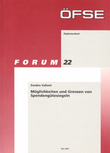 Nicht digital verfügbar! Das Österreichische Institut für Spendenwesen hat eine Diplomarbeit zu "Möglichkeiten und Grenzen von Spendengütesiegeln" gefördert. Die Arbeit von Mag. Sandra Vallant befasst sich mit einem Vergleich der Spendegütesiegel in Deutschland, der Schweiz und Österreich.
