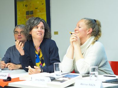Nachdem Thea Riofrancos ihren Vortrag beendet hat, wurde auf einem Expert*innenpanel weiterdiskutiert. Alexandra Wojewska, Erika Faigen, Sebastian Felten (alle Uni Wien) und Bernhard Tröster (ÖFSE) gaben zuerst noch ihre Sichtweisen zum Gesagten ab, bevor sie die Fragen aus dem Publikum beantworteten. Zur Abrundung des gelungenen Abends, gab es bei kleinen Snacks noch die Gelegenheit, sich vertiefend auszutauschen.