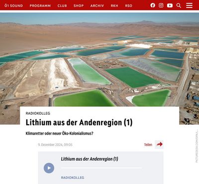Aktuell widmet sich ein mehrteiliges Ö1-Radiokolleg dem Thema „Lithium aus der Andenregion“. Im ersten Teil liegt der Fokus u.a. auf dem EU Critical Raw Materials Act (CRMA) und seinen Auswirkungen. Unsere Rohstoffexpertin Karin Küblböck wurde dazu von Ö1-Redakteurin Melissa Erhardt interviewt. Die Sendung ist hier verfügbar.