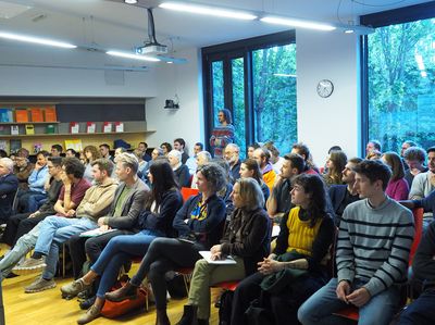 Thea Riofrancos stellte ihre umfangreiche Forschung vor und brachte dem zahlreich erschienenen Publikum die Problemzonen der globalen Lithium-Industrie und einzelner Akteure nahe: Umweltschäden, Menschenrechtsverletzungen, Profitmaximierung, etc. Ihre Ausführungen folgten dabei stets der Frage, ob ein Kapitalismus mit grünem Anstrich die Probleme der Klimakrise lösen kann und wo dessen Grenzen liegen.