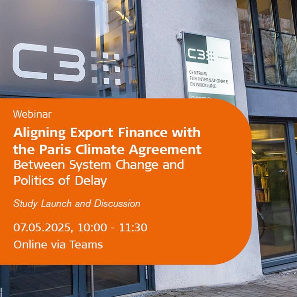 This Online Event Offers a Stocktaking and an Outlook. It brings together perspectives from different stakeholder groups on evolving ECA policies and practices. And it comes at a moment of tension – between political renegotiation and inertia on the one hand, and the professionalisation of climate standards and the momentum of a growing green economy on the other. In other words: A time to learn from international best practices and to foster exchange.