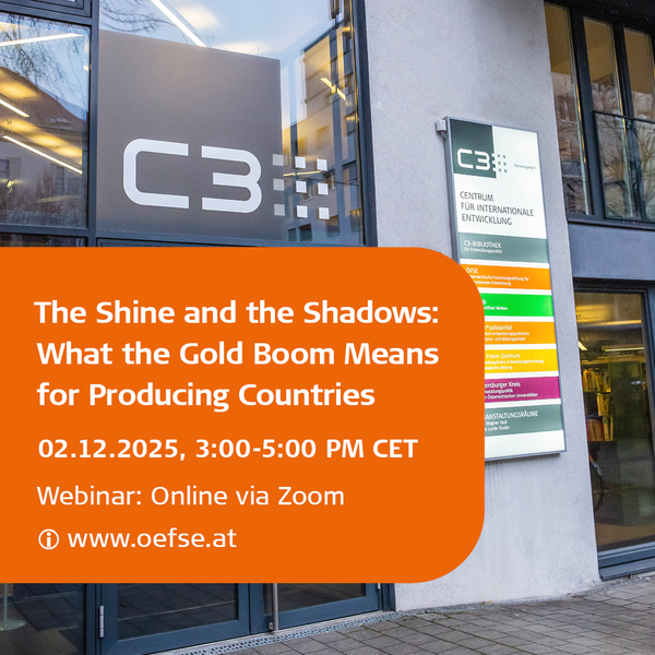 Gold prices have reached historic highs in 2025. While gold is considered a safe haven for investors in uncertain times, the consequences in producing countries are far less shiny. Higher prices can bring increased revenues, yet they also fuel large-scale mining projects often associated with enormous energy and water consumption, toxic waste, and deforestation. At the same time, artisanal and small-scale mining is expanding, typically under precarious conditions and with severe mercury pollution affecting both people and the environment. Moreover, gold trading often operates in grey zones between informal economies, smuggling, and organized crime, and despite numerous reform efforts, the sector remains one of the most opaque in the global commodities landscape.