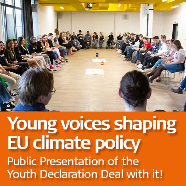 Climate change and the sustainability crisis are existential threats for Europe and the World. We need an ecological and social turnaround! With the Green Deal the EU member states are committed to turning the EU into a climate neutral continent by 2050 and to implement the Agenda 2030 and its 17 Goals for Sustainable Development. However, to bring these concepts into action politicians need to listen to the youth’ voices.